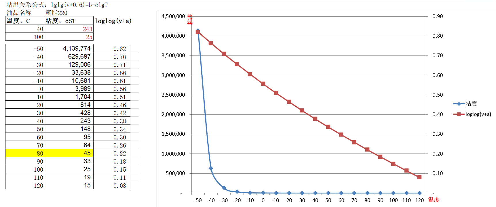 要計算機油和潤滑脂的正確粘度比,應使用公布的40°C和100°C下的基礎油粘度,并將其應用于?-T圖?,F(xiàn)在算出基礎油在工作溫度下的粘度。